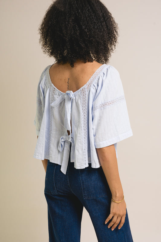 Bow Back Ribbon Lace Blouse