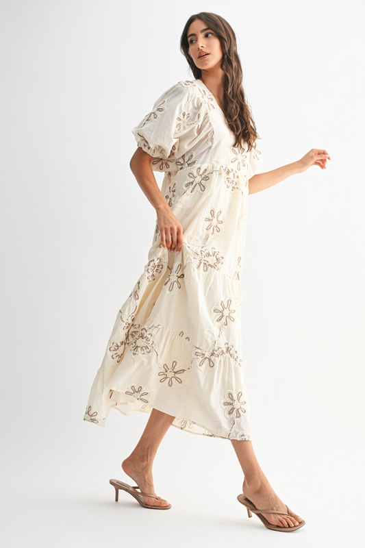 Marie Embroidered Dress With Balloon Sleeves