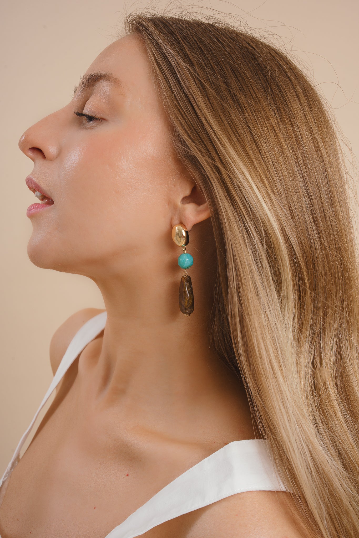 Bold and colorful drop earrings with mixed resin beads and a polished metal stud. Lightweight and eye-catching, perfect for everyday wear or adding a vibrant accent to any outfit.