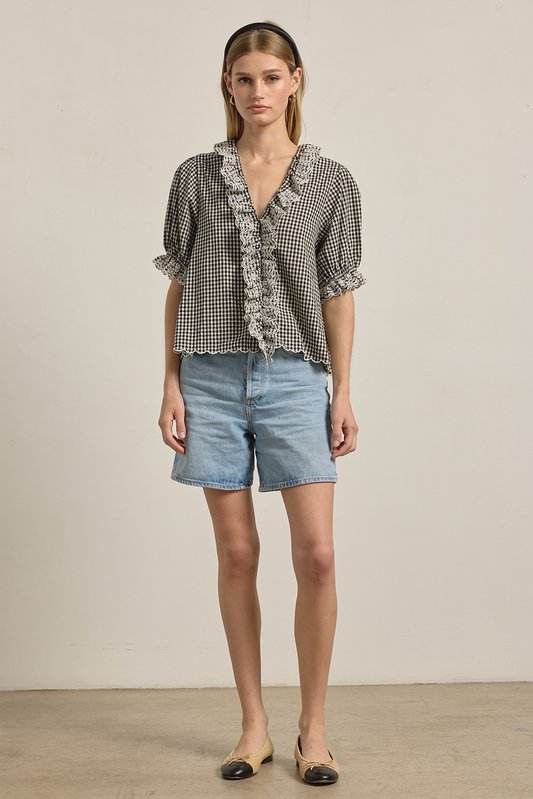 Gingham Lace Ruffle Blouse
